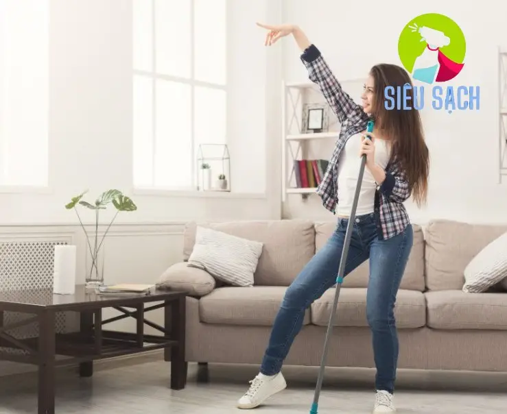 Bạn có thể sử dụng máy hút bụi hoặc chổi quét nhà để làm sạch sàn nhà. Ngoài ra, hãy chú ý lau nhà bằng nước lau sàn định kỳ để loại bỏ các vết bẩn cứng đầu và khử trùng sàn nhà.