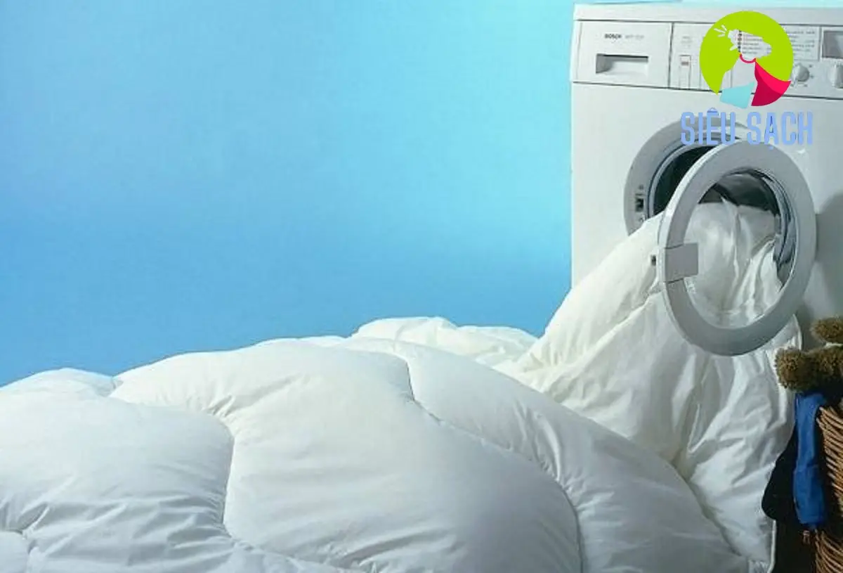Giặt máy: Giặt máy phù hợp với các loại chăn bông dày, lớn và có chất liệu bền chắc.