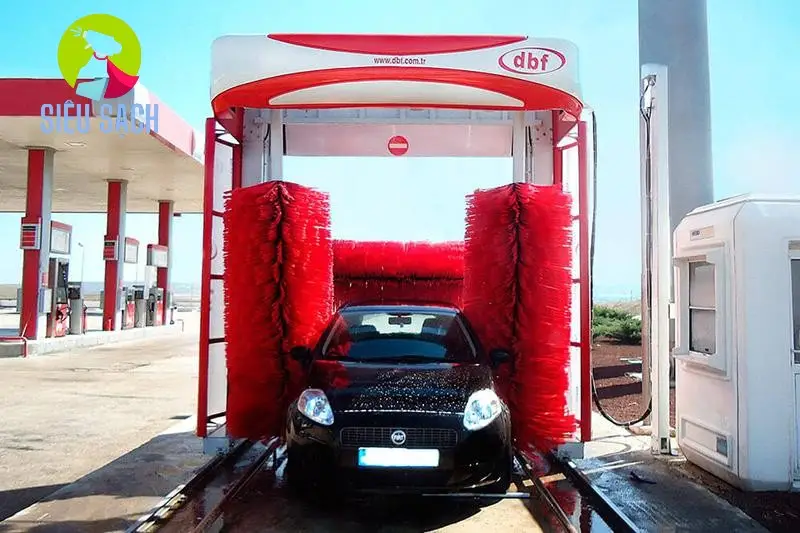 Phun nước: Hệ thống phun nước phủ kín toàn bộ xe, giúp làm mềm và loại bỏ bụi bẩn.